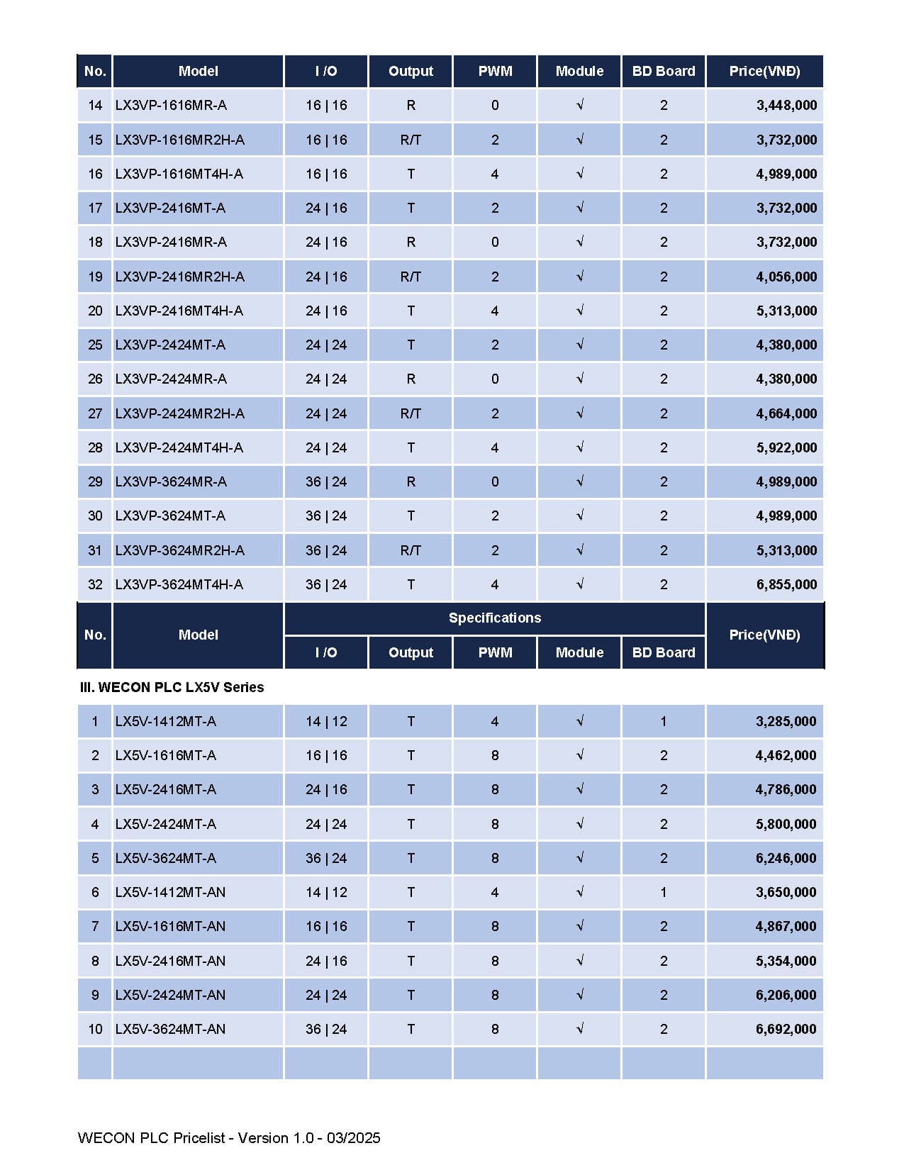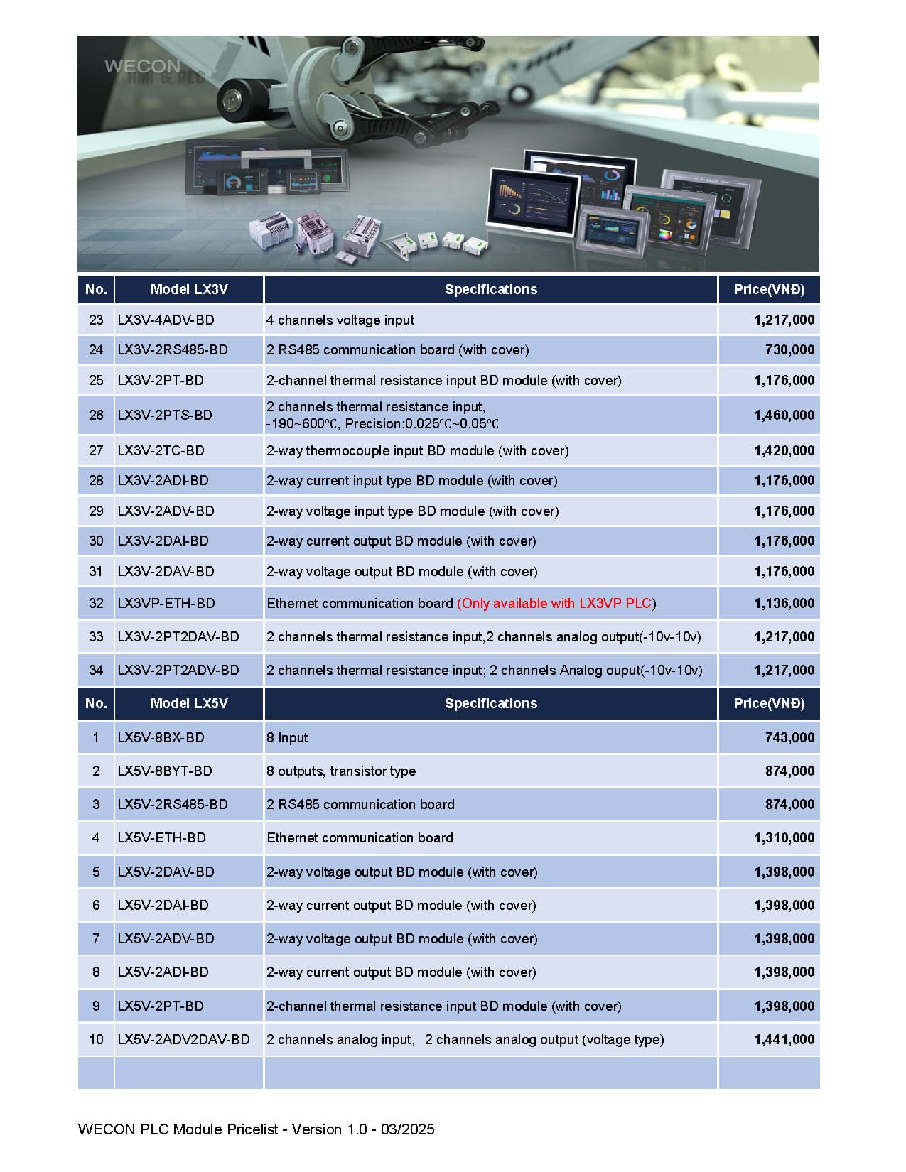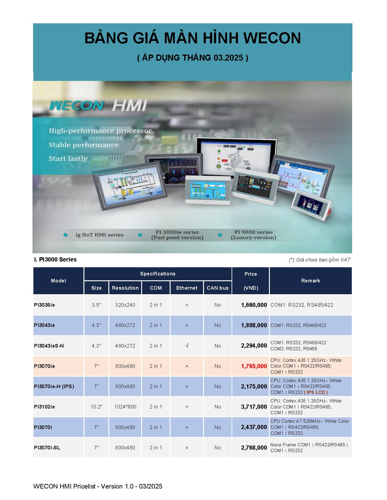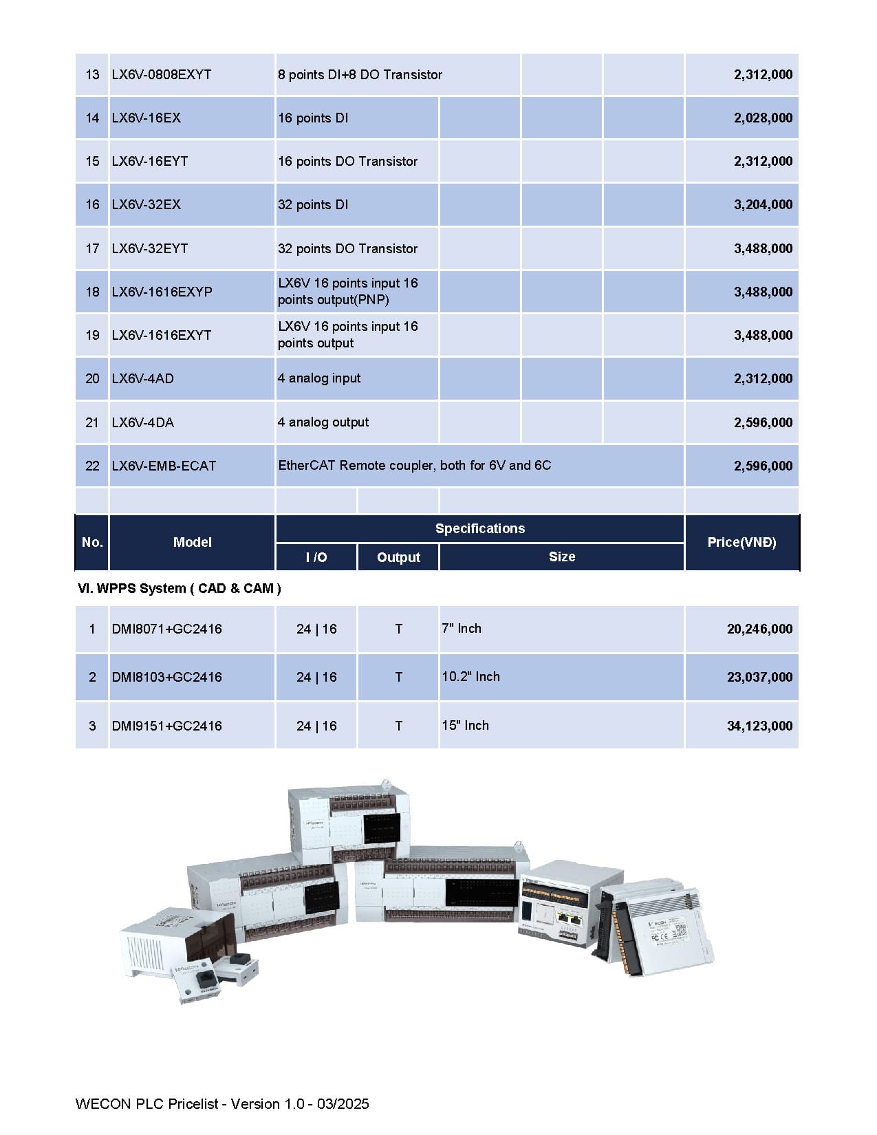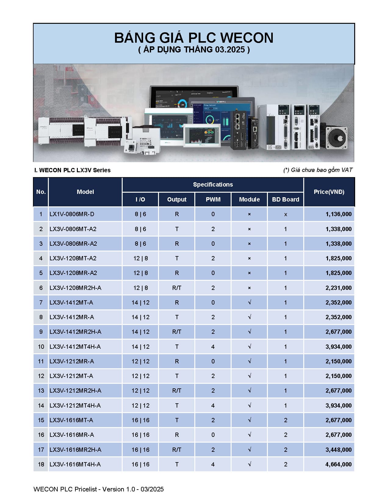 Bảng giá Wecon cập nhật mới nhất (Tháng 03/2025)