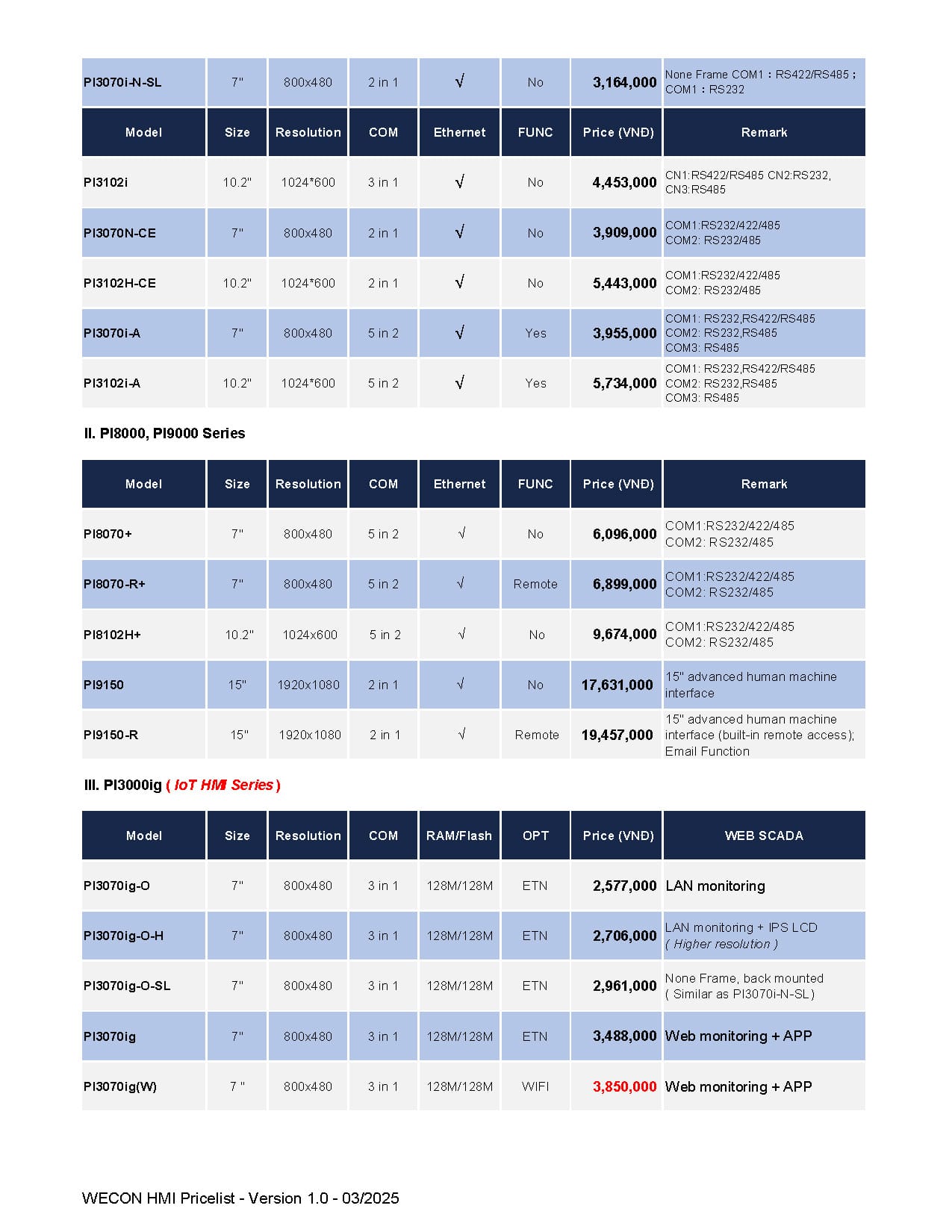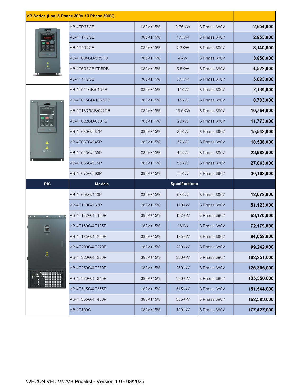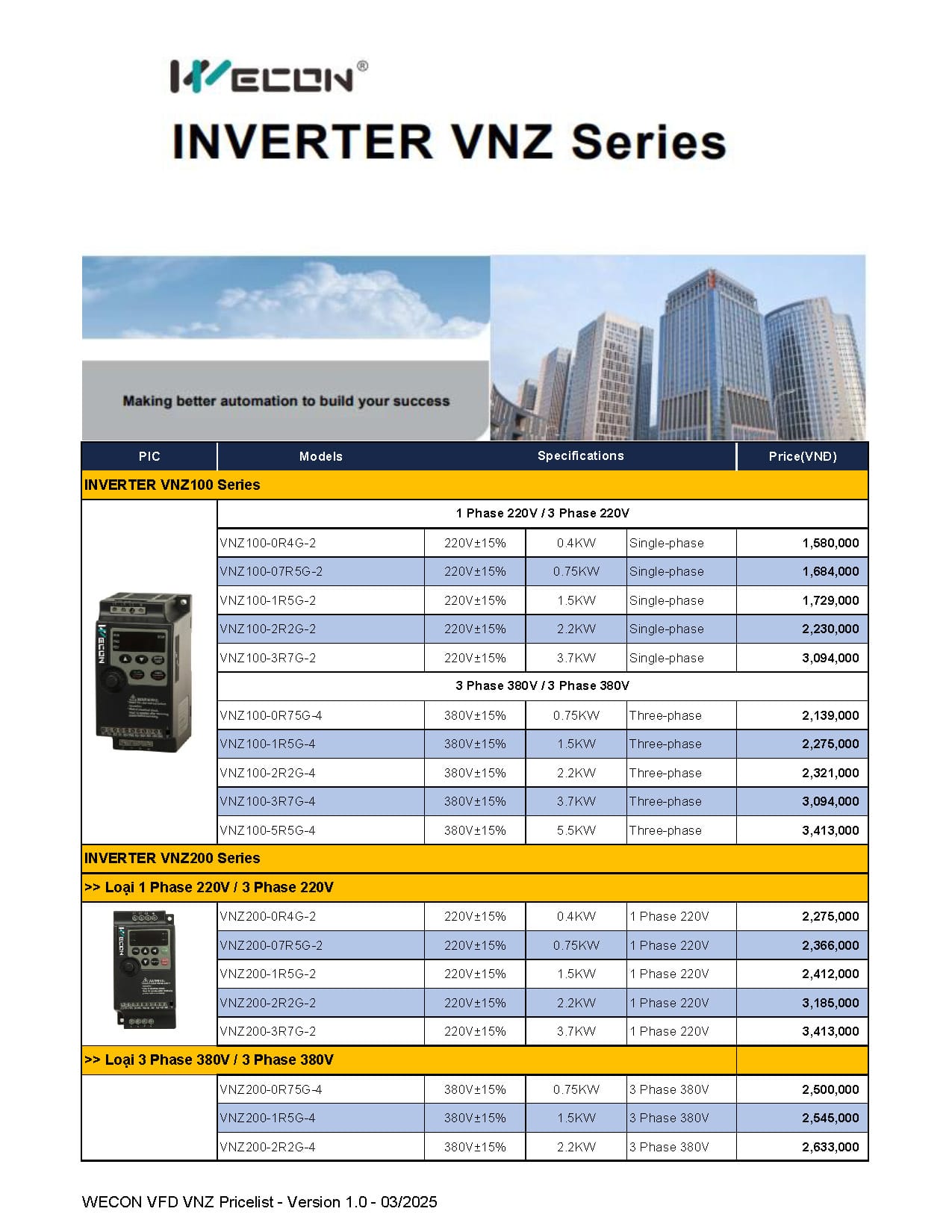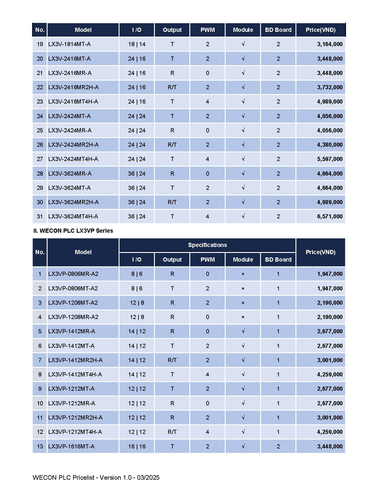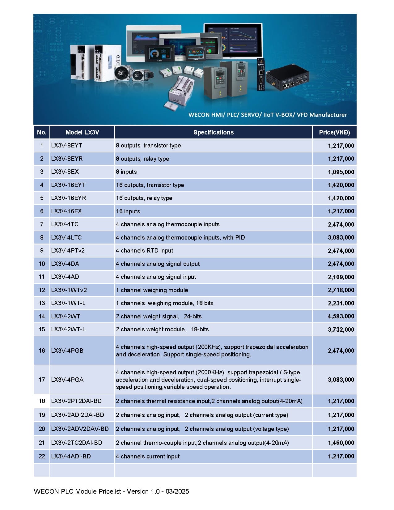 Bảng giá Wecon cập nhật mới nhất (Tháng 03/2025)