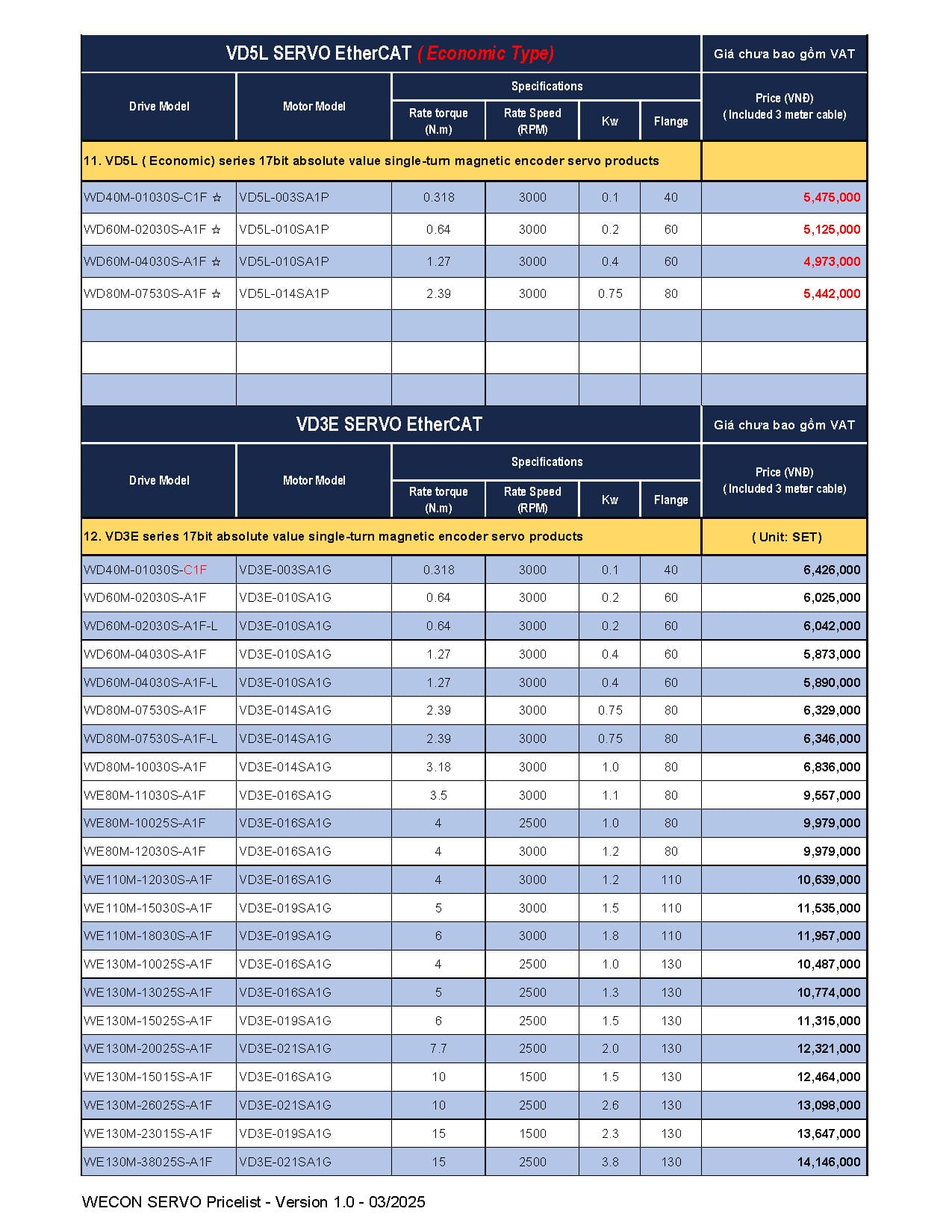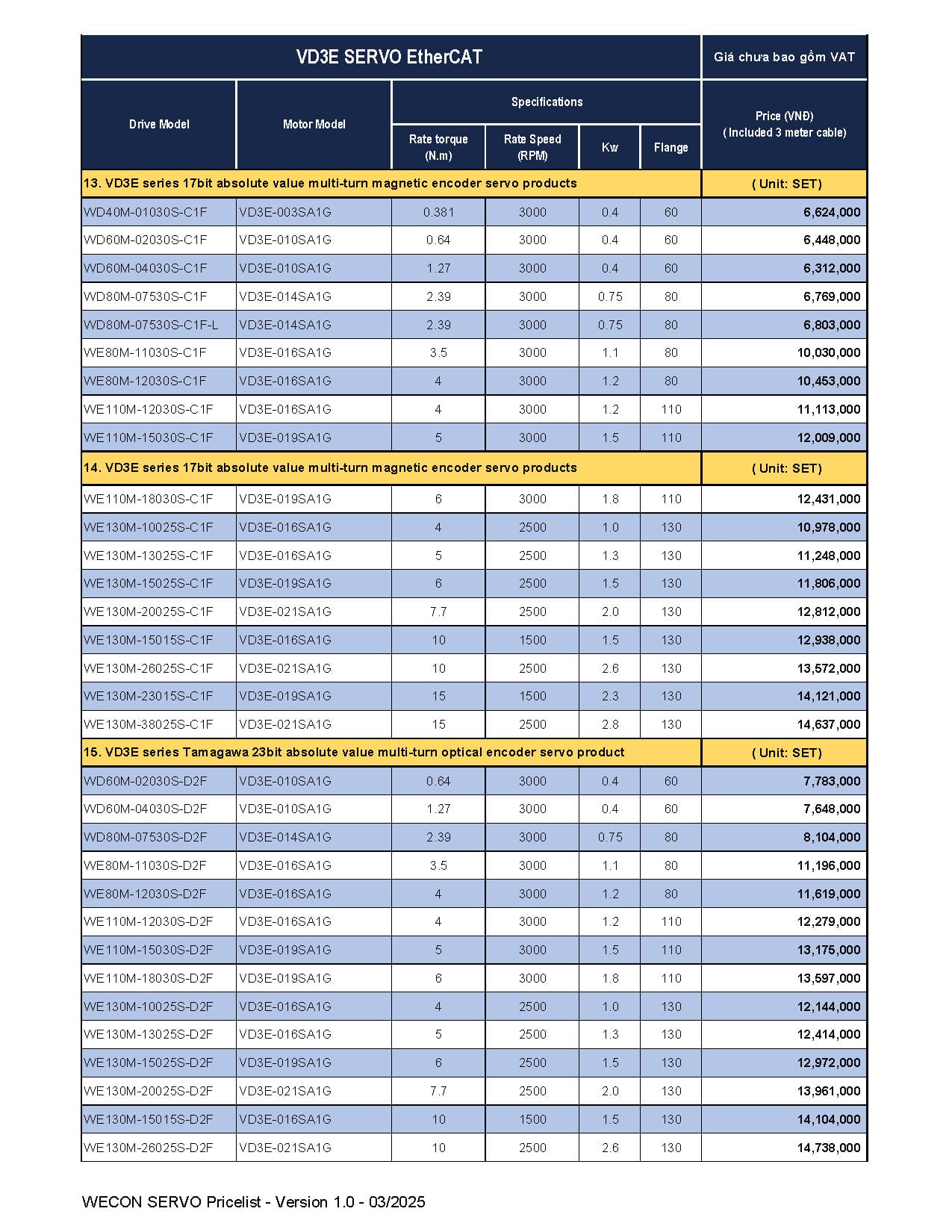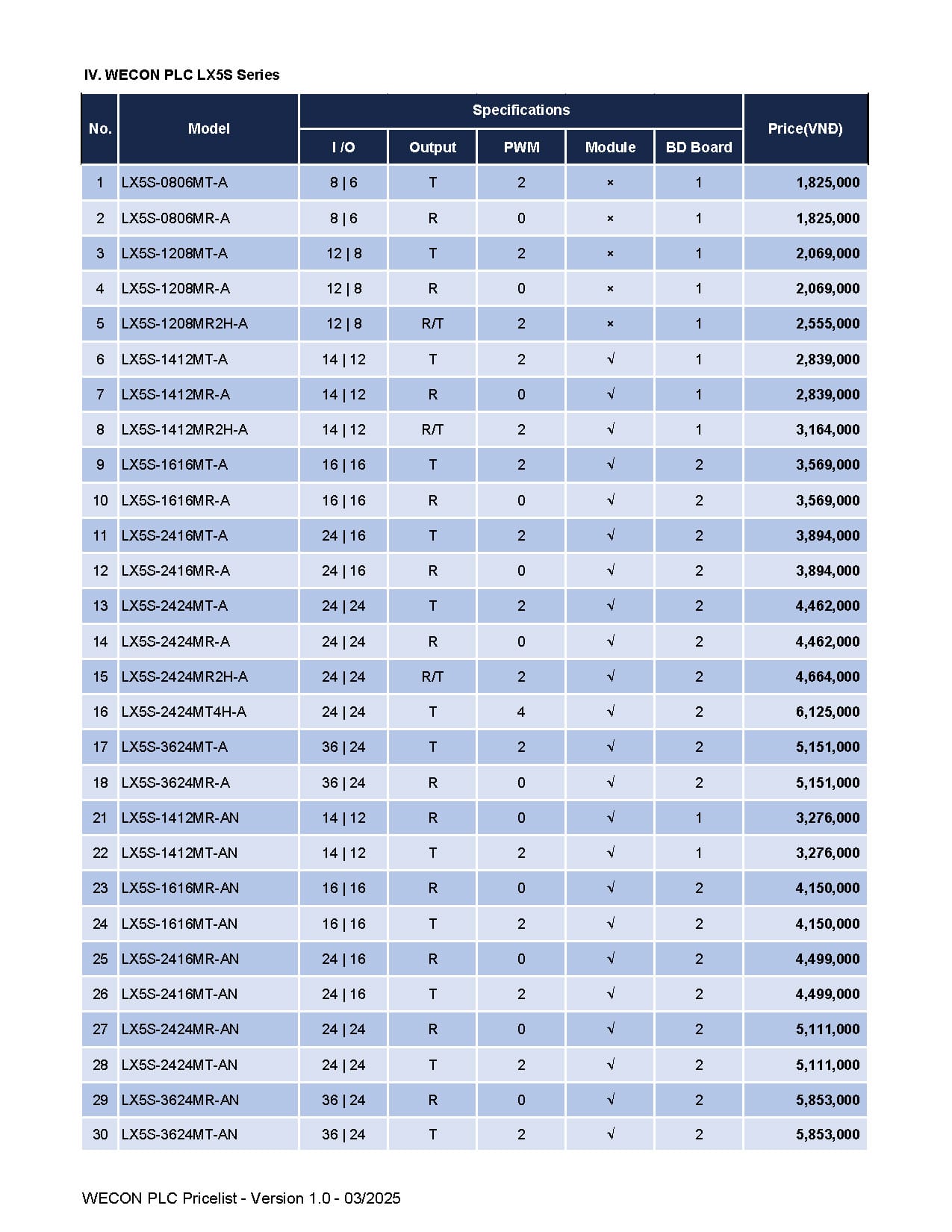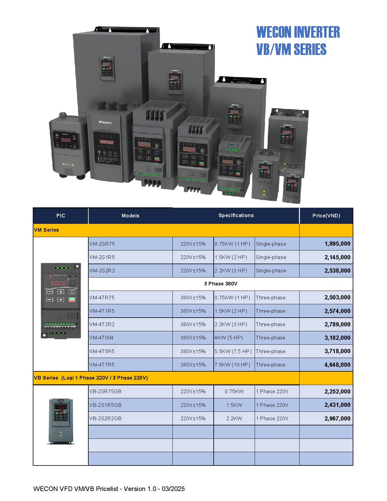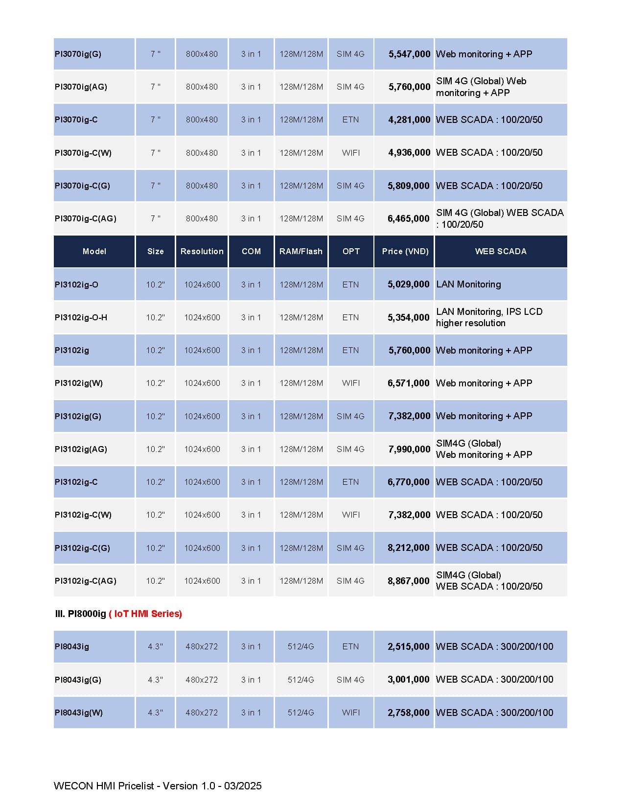 Bảng giá Wecon cập nhật mới nhất (Tháng 03/2025)