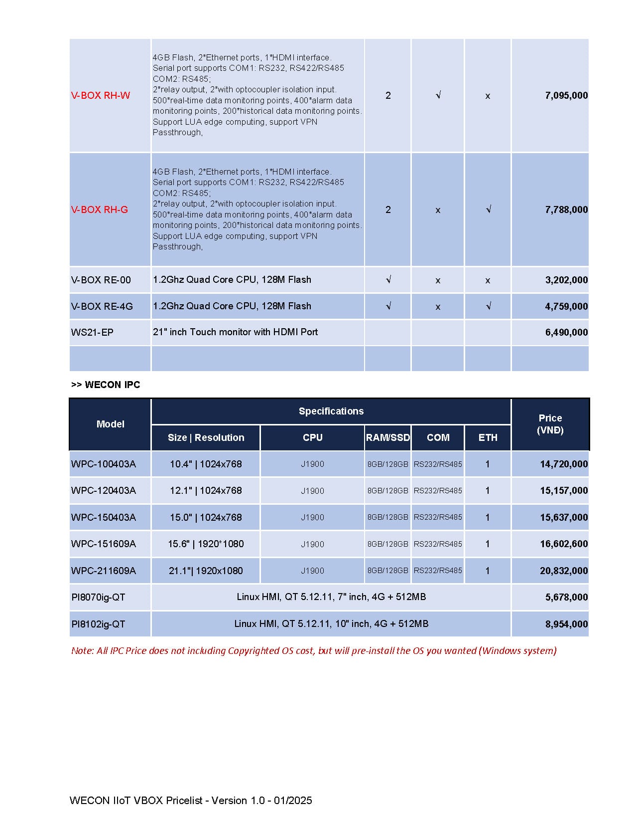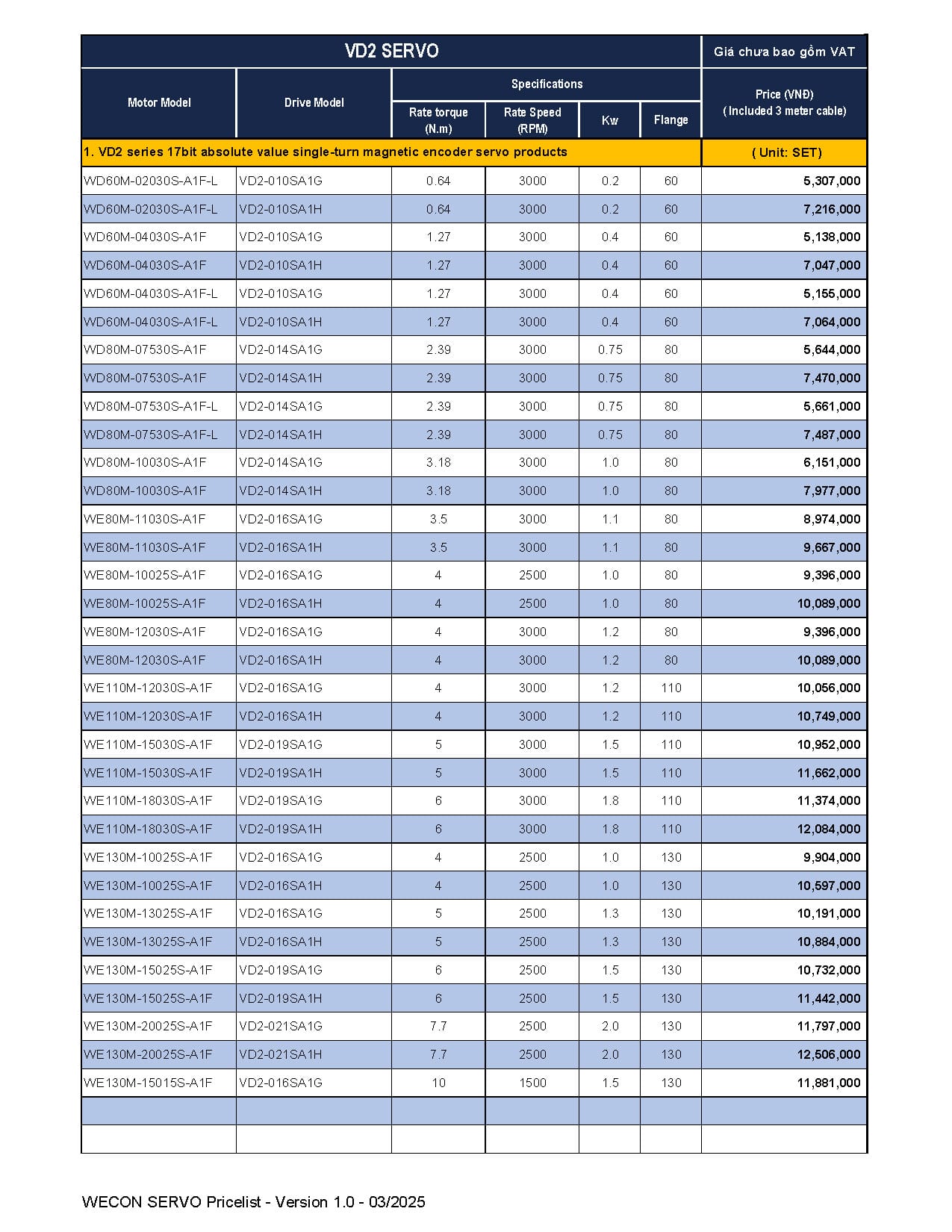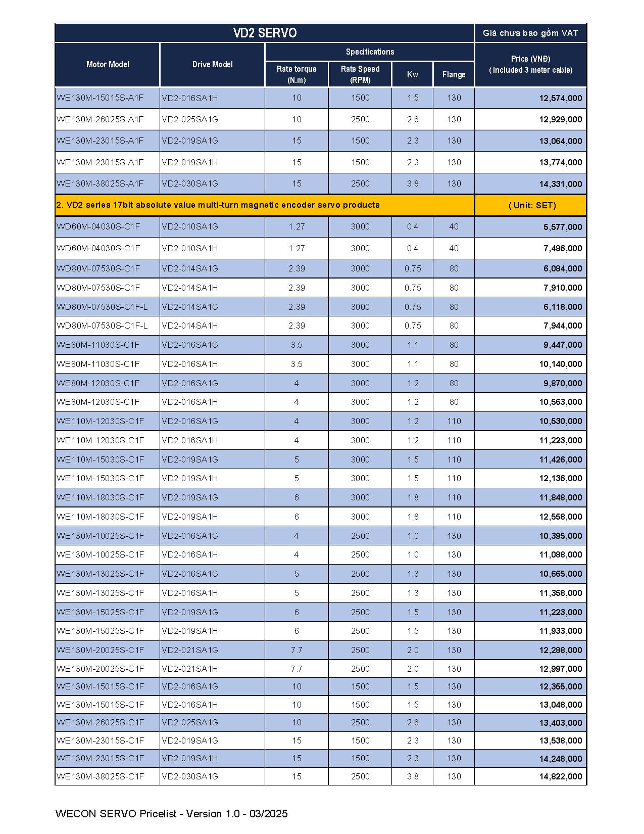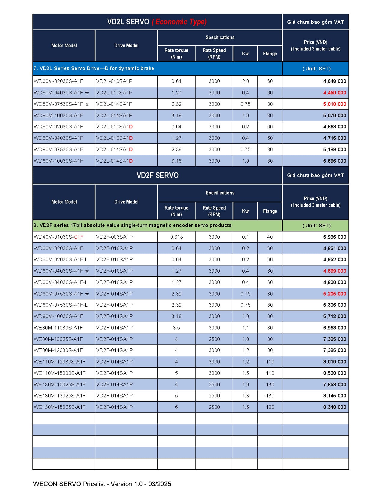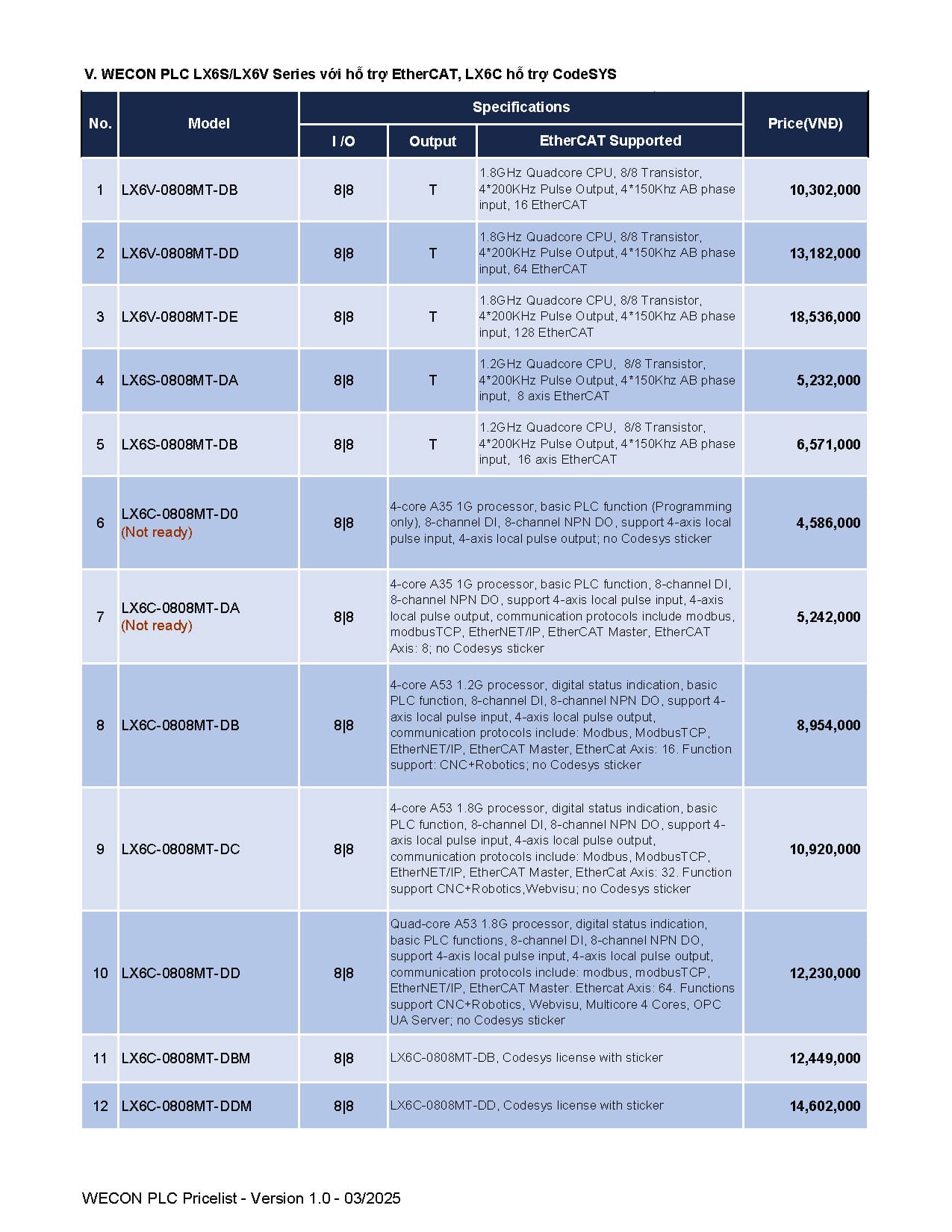 Bảng giá Wecon cập nhật mới nhất (Tháng 03/2025)